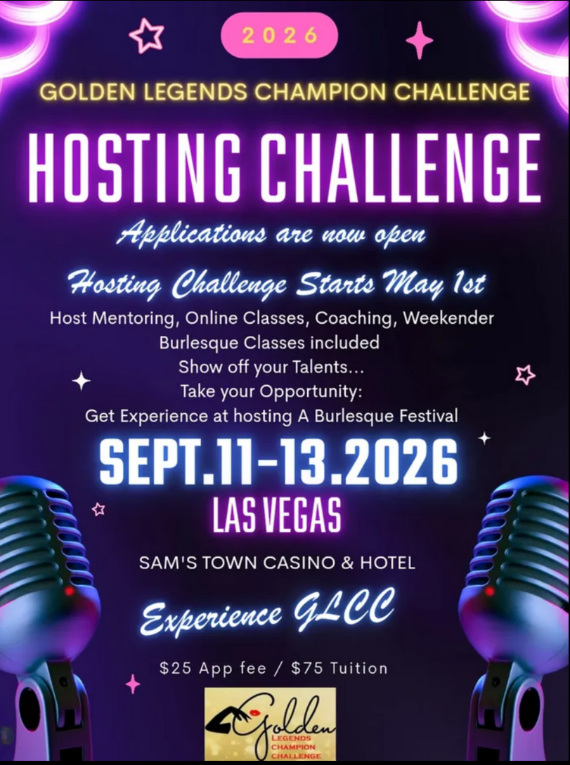 This Challenge will give you an opportunity to test your skills and be able to network in the Burlesque entertainment industry with producers, stars, and legends.